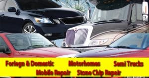 We service all makes and models, foriegn and domestice, semi trucks, motorhomes, stone chip repair and will come to you for mobile repairs . Check out our blog for the latest coupons, promotions and company news. Have any comments or suggestions for the site? We’d love to hear from you. Drop us a note on our contact page…